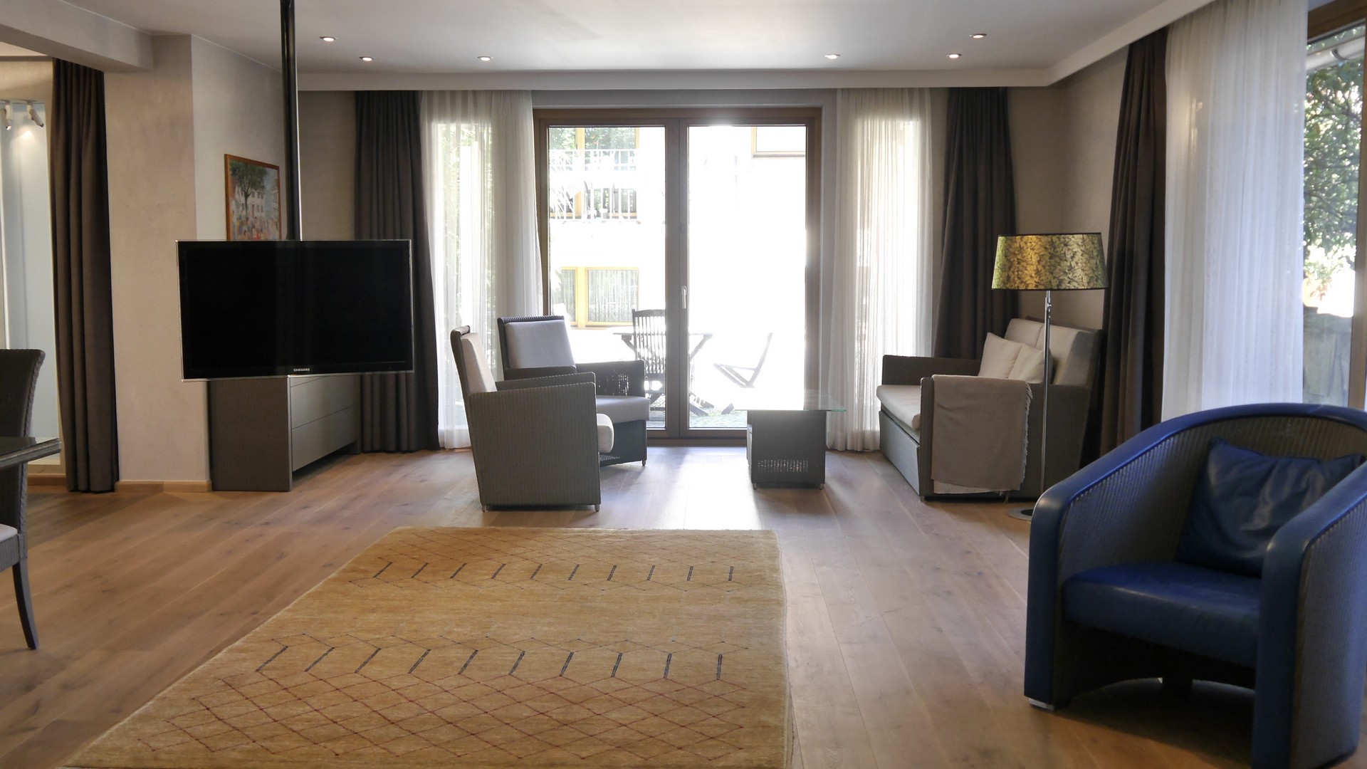Diese Suite beeindruckt durch schöne hölzerne Parkett-Dielen. Kombiniert mit modernen Elementen und hat diese Einheit Ihren ganz eigenen Charme. Der Kitchenettebereich (Vollaustattung) ist separiert durch eine Glasschiebetüre zum Wohn-Schlafraum. Diese Einheit ist geeignet bis 2 Personen und verfügt über eine wunderschöne großzügige umlaufende Terrasse. Das hochwertige Granitbadezimmer ist mit Dusche ausgestattet.